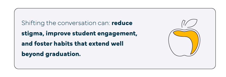 Research consistently shows that habits formed during emerging adulthood influence long-term health trajectories.1 As a result, colleges are uniquely positioned to shape environments that promote healthy behaviors rather than narrow weight goals.